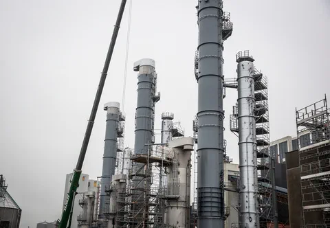 Ørsted has taken the next big step towards the realisation of Denmark's first full-scale carbon capture and storage project (CCS), the 'Ørsted Kalundborg CO2 Hub'. This is done with the lifting five sets of absorbers, desorbers, and direct contact coolers, which together constitute the key components of the two carbon capture facilities under construction. Three sets have been lifted into place at Asnæs Power Station, two sets at Avedøre Power Station.