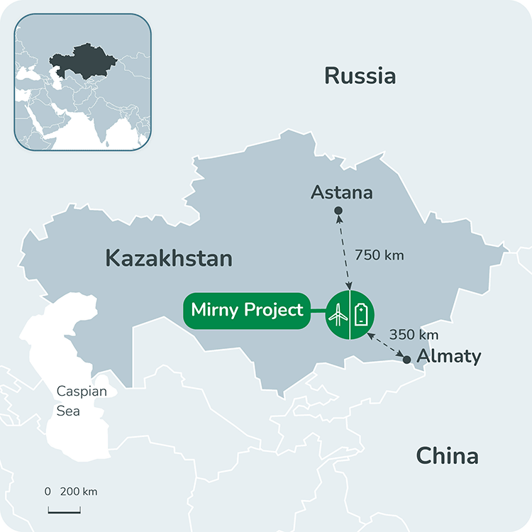 The Mirny project consists of a 1 GW onshore wind farm totaling 150 turbines, combined with a 600 MWh battery energy storage system supplied by TotalEnergies’ wholly owned affiliate Saft, for a reliable power supply to the national grid. The inclusion of a storage facility will enhance grid stability and represents a significant upgrade to the country's energy infrastructure. TotalEnergies holds 60% of Mirny, jointly with its partners Samruk Energy and KazMunayGas (20% each).