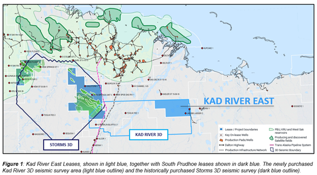The Kad River 3D survey covers the entirety of the newly secured Kad River East leases, comprising approximately 17,920 acres (100% working interest) east of the Trans Alaska Pipeline System (TAPS).