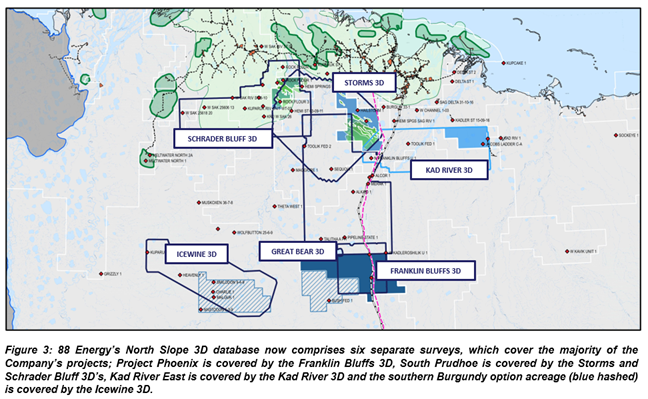 88 Energy currently has access to six 3D seismic surveys across its North Slope portfolio, forming an extensive, portfolio of data across the basin that enables the team to integrate regional trends, legacy discoveries and newly acquired acreage, thereby materially reducing pre-drill uncertainty.